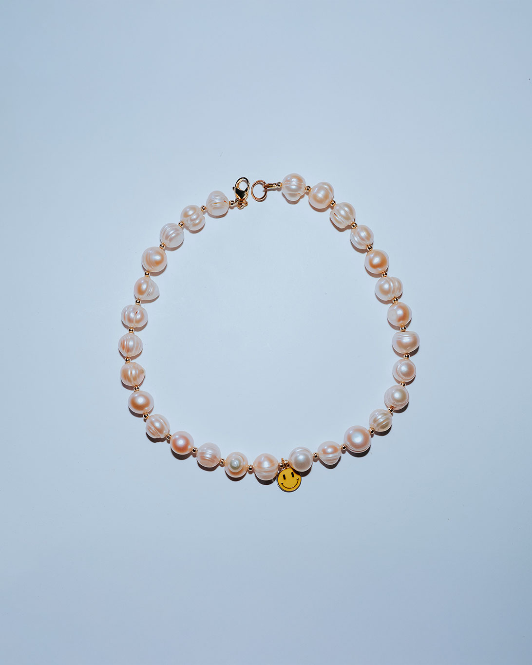 Ses perles nacrées portent les reflets d’une lumière douce, comme un ciel voilé de coton.