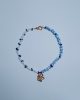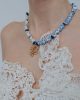 Matériaux : Chaîne en acier inoxydable argent / 20 perles d’eau douce / 3 perles en porcelaine blanche et bleu / 1 perle à strass